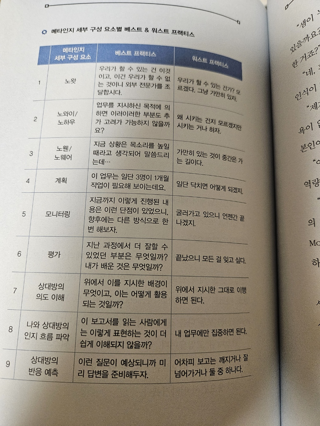 메타인지에 대해서 실제 사례로 살펴보면, 무엇을 알고 있는지 확인하는 것은 모를 경우 외부 전문가로부터 인사이트를 얻을 수 있다고 생각할 수 있고, 반대로 최악의 사례는 그냥 가만이 있자라는 태도를 가지게 됩니다.